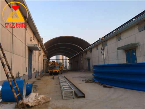 工程名稱:江蘇省淮安市三河農(nóng)場(chǎng)倉間罩棚拱形屋頂安裝工程