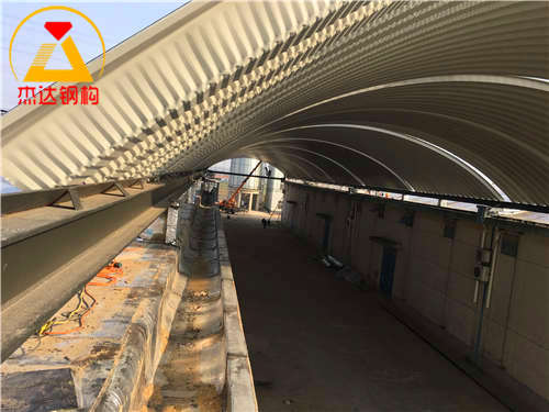 3. 抗風(fēng)與防滲能力強(qiáng):該結(jié)構(gòu)在面對(duì)強(qiáng)對(duì)流天氣時(shí)能更有效地分散風(fēng)壓,拱形波紋鋼板接縫緊密,具備良好防水能力。