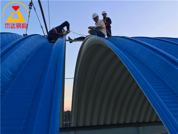在拱腳和拱形屋頂中央兩側安裝角鋼支撐,保障結構穩定。