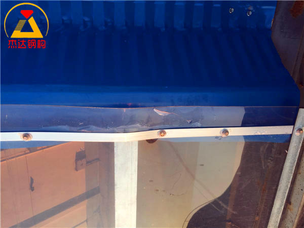 安裝時,兩側先壓上鍍鋅或鍍鋁壓條,并用鉆尾釘固定。