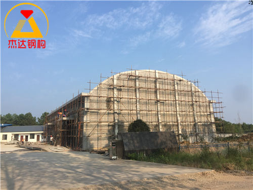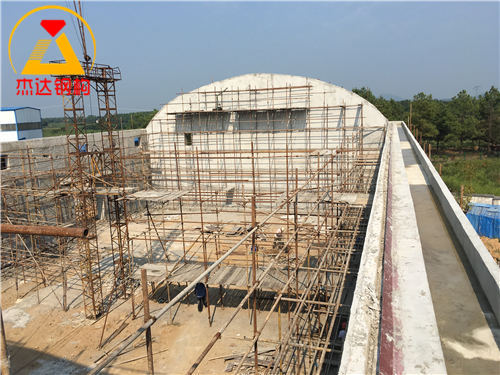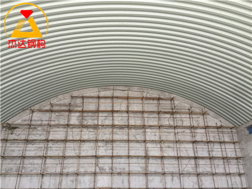 安徽安天食品集團的糧食儲備庫也采用了類似的拱形屋頂設計。土建施工單位根據拱形屋頂施工方的設計要求,預留了合理的拱高,為后續鋼結構的安裝提供了保障。此類結構設計對于糧食的防潮和儲存環境控制起到了積極作用。