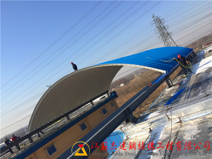 設計上,該拱形屋頂結構簡潔且合理,既能滿足堆放設備的空間需求,也能確保人員通行的便利性。通過合理的拱形曲線分布,屋頂的受力更加均勻,提升整體結構的安全性能。