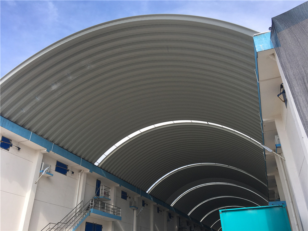中空式采光帶通常會在拱形屋頂的部分區域預留出用于安裝采光材料的位置。例如,在30米跨度的屋頂結構中,常見的做法是保留中間10米或兩側各5米作為透光區域。這種布局可以有效引入自然光,適合有局部照明需求的建筑。